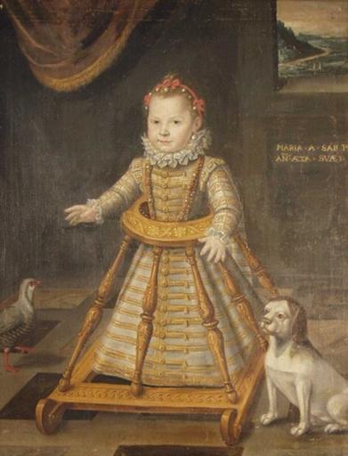 Keywords: Maria Apollonia di Savoia.jpg ca 1595-1596 Oil on canvas cm 112 88 Castello di Stupinigi Galleria dei quadri http //www quirinale it/qrnw/statico/artecultura/mostre/2010_8marzo/immagini-html/do-15 htm other versions PD-old-100 DEFAULTSORT 1595-1596; Maria Apollonia of Savoy Jan Kraek Stupinigi Maria Apollonia of Savoy 1590s portrait paintings 1594 births 1656 deaths 16th-century oil portraits of girls at full length 16th-century portrait paintings in Italy Baby walkers Drapery in portrait paintings Portrait paintings of standing girls Portrait paintings of girls with birds Portrait paintings of girls with dogs Portraits with window at the background Ruffs in art female Spanish saya court dress |