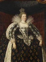 Keywords: Maria de' Medici Frans Pourbus the Younger (detail).jpg Artwork creator Frans Pourbus II Maria de' Medici in full regalia She was the wive of Henry IV of France Detail d'une portrait de Marie de Médicis la reine de Henri IV Dettaglio di un ritratto de Maria de' Medici Portet van Maria de Medici in vol ornaat Zij was de echtgenote van Hendrik IV van Frankrijk between 1609 1610 oil canvas cm 307 186 Institution Louvre not on view accession number INV 1710 object history Provenance ca 1789 1799 acquisition LangSwitch Unknown Inconnu Onbekend LangSwitch Unknown Inconnu Onbekend LangSwitch Probably ceded during the French Revolution Probablement cédé au cours de la Révolution française Waarschijnlijk afgestaan tijdens de Franse Revolutie <br> ProvenanceEvent 1815 purchase Chambre des Pairs Paris ProvenanceEvent 1816 transfer Louvre Department of Paintings Paris Chambre des Pairs Paris credit line 4908 Louvre Paris http //cartelen louvre fr Website Catalogue Louvre http //cartelen louvre fr/cartelen/visite srv car_not_frame idNotice 4908 langue en Webpage http //cartelen louvre fr/pub/en/image/6112_p0006870 001 jpg Picture thumb left LangSwitch Version in the Rijksmuseum Amsterdam Version dans la Rijksmuseum Amsterdam Versie in het Rijksmuseum Amsterdam PD-old-100 Maria de' Medici by Frans Pourbus II M Flemish paintings in the Louvre Pourbus Frans 2 Flemish paintings in the Louvre - not on display Pourbus Frans 2 1600s paintings in the Louvre 17th-century oil portraits of women 1610 Maria de' Medici 17th-century portrait paintings in the Louvre 1610 Maria de' Medici Ermine clothing in art Farthingales Fleur-de-lis in portrait paintings Women with jewellery in art People with crowns in art 1600s portrait paintings |