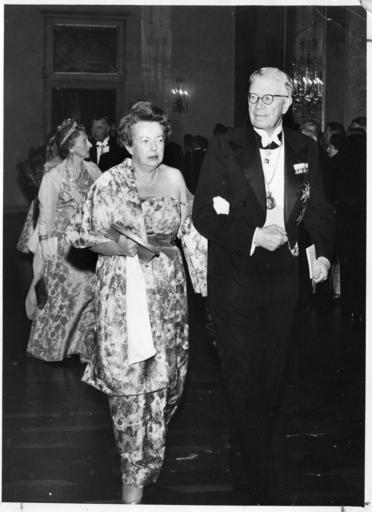 | Keywords: smithsonian institution smithsonianinstitution womensday woman scientist nobel nobelprize laureate 1963 nobellaureate physics atomic gown king sweden maria goeppert-mayer mariagoeppertmayer haute couture hautecouture reception vintage couple vintagecouple glasses tie dress hair laight suit jewlery people smithsonian institution archives smithsonianinstitutionarchives women's history month womenshistorymonth women in science womeninscience 2009 commemorative us stamps commemorativeusstamps stamps across the commons stampsacrossthecommons physicists 20th century - mid 20thcenturymid academia physicist blackandwhite monochrome indoor black and white Description: This photo was taken in 1963, as physicist Maria Goeppert-Mayer (1906-1972) was being escorted by King Gustav Adolf of Sweden to a gala banquet following the ceremony during which she received the Nobel Prize in physics for development of the model of atomic nuclei in which the orbits of protons and neutrons are arranged in concentric "shells". Creator/Photographer: Unidentified photographer Medium: Black and white photographic print Date: 1963 Repository: Smithsonian Institution Archives Collection: Accession 90-105: Science Service Records, 1920s – 1970s - Science Service, now the Society for Science & the Public, was a news organization founded in 1921 to promote the dissemination of scientific and technical information. Although initially intended as a news service, Science Service produced an extensive array of news features, radio programs, motion pictures, phonograph records, and demonstration kits and it also engaged in various educational, translation, and research activities. Accession number: SIA2008-1866 Description: This photo was taken in 1963, as physicist Maria Goeppert-Mayer (1906-1972) was being escorted by King Gustav Adolf of Sweden to a gala banquet following the ceremony during which she received the Nobel Prize in physics for development of the model of atomic nuclei in which the orbits of protons and neutrons are arranged in concentric "shells". Creator/Photographer: Unidentified photographer Medium: Black and white photographic print Date: 1963 Repository: Smithsonian Institution Archives Collection: Accession 90-105: Science Service Records, 1920s – 1970s - Science Service, now the Society for Science & the Public, was a news organization founded in 1921 to promote the dissemination of scientific and technical information. Although initially intended as a news service, Science Service produced an extensive array of news features, radio programs, motion pictures, phonograph records, and demonstration kits and it also engaged in various educational, translation, and research activities. Accession number: SIA2008-1866 |