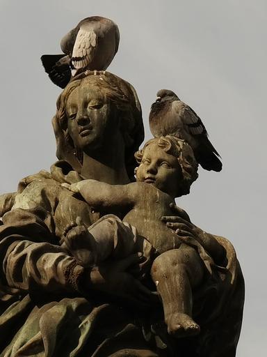 Keywords: maria jesus statue pigeons madonna mother of god jesus christ christ sculpture christianity christian holy maria child faith stone religion jungfau maria virgin mary liege