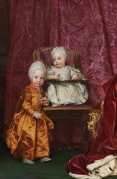 Keywords: Maria Karolina and Ferdinand of Austria.jpg Artwork Creator Anton Raphael Mengs Retrato de los archiduques Fernando III de Toscana 1769-1824 y María Ana Fernanda de Austria 1770-1809 que fueron hijos del emperador Leopoldo II del Sacro Imperio Romano Germánico y de la emperatriz María Luisa de Borbón 1770 oil on canvas Size cm 96 147 Institution Museo del Prado accession number P02192 object history credit line https //www museodelprado es/coleccion/obra-de-arte/los-archiduques-fernando-y-maria-ana-de-austria/31ecd330-4994-4562-846b-6190be27df39 PD-old-100 http //www museodelprado es/coleccion/galeria-on-line/galeria-on-line/obra/los-archiduques-fernando-y-maria-ana-de-austria/ no_cache 1 <gallery>Archduke Leopold and Archduchess Maria Anna jpg</gallery> DEFAULTSORT 1770; Habsburg-Lorraine children Ferdinand III Grand Duke of Tuscany Archduchess Maria Anna of Austria 1770-1809 Portrait paintings by Anton Raphael Mengs Paintings by Anton Raphael Mengs in the Prado Museum 18th-century portrait paintings in the Prado Museum Paintings of people of Salzburg state 1770s oil on canvas paintings in Spain Portrait 1770 oil on canvas paintings Portrait 1770 portrait paintings from Germany M 18th-century childhood in painting 18th-century family portraits of royalty 18th-century oil portraits of children at full length Badges of the Order of the Golden Fleece in portrait paintings Chairs in portrait paintings Children with fur in art Ermine clothing in art Paintings of boys' dresses Portrait paintings of standing children Portraits of siblings Portraits wearing caps Portraits with 2 persons Red drapery in portrait paintings Satin clothing in art Young siblings in art |