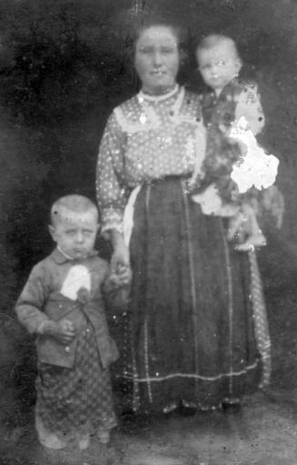 Keywords: Maria Popiţiu with Iulian (b Aug 15, 1926) & Petre (b June 27, 1929).jpg en Maria Popiţiu with two of her children People from Transylvania ISBN 978-0-9868231-0-7 Author the early 1930s PD-old cc-by-sa-3 0 Black and white photographs of families Looking at viewer Black and white photographic portraits Adults with children Children's clothing Clothing of Romania Black and white portrait photographs at full length People of Transylvania Female black hair Standing children Children of Romania People from Bocșa Sălaj Child carrying Romania in the 1930s People with aprons Barefoot Black and white photographs of standing females |