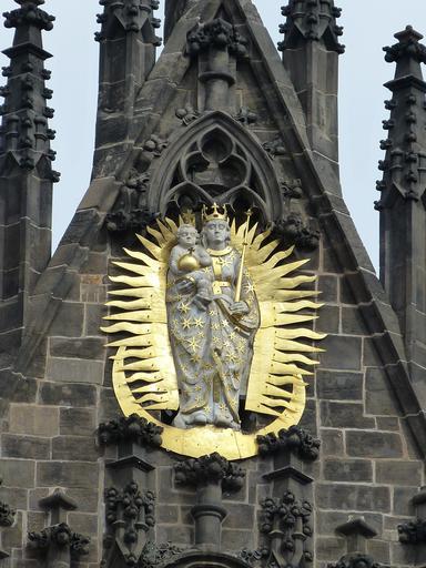 Keywords: maria prague czech republic capital old town historically church fig baroque marian column statue still image madonna christianity sculpture star jesus golden scepter with child crown