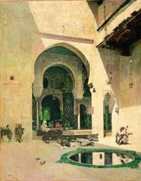 Keywords: Mariano Fortuny The Court of the Alhambra.jpg artwork The Court of the Alhambra Oil on canvas 75 x 59 cm Figueres Museu Fundacio Gala-Salvador Dali 1871 Creator Mariano Fortuny y Carbo PD-old-100 own Credit line user Rlbberlin Paintings by MariĆ Fortuny Orientalist paintings in Spain Paintings from Spain Alhambra in art Africans in 19th-century art 1871 paintings 19th-century paintings in Spain Paintings of courtyards and patios |