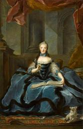 Keywords: Marie Adelaide de Bourbon03.jpg Marie Adelaïde de Bourbon auch Madame Adélaïde genannt Tochter Ludwigs XV Portrait of Marie Adélaïde of France 1732-1800 Marie Adelaïde de France dite Madame Adélaïde fille de Louis XV 1758 Oil on canvas cm 222 148 Institution Louvre Institution Versailles Chambre de Madame Victoire du Château de Versailles INV 6892 http //www photo rmn fr/cf/htm/CSearchZ aspx E 2K1KTS2RHM0VZ SubE 2C6NU0TW85WU 000PE002106 000PE007344 other versions PD-old-100 DEFAULTSORT 1758; MªAdélaïde of France Portrait paintings by Jean-Marc Nattier Paintings by Jean-Marc Nattier in France French paintings in the Louvre Marie Adélaïde of France 18th-century portrait paintings in the Louvre 18th-century portrait paintings in the Musée national du Château de Versailles Chambre de Madame Victoire du Château de Versailles z 1750s dresses 1758 oil on canvas paintings in France Portrait 1758 portrait paintings from France 18th-century oil portraits of sitting women at full length 18th-century portrait paintings in interiors 18th-century portrait paintings with dogs Carpets in portrait paintings Columns in portrait paintings Drapery in portrait paintings Females with blue dresses in art Females with chokers in art Fur garments in art Lace sleeves in art Paintings by Jean-Marc Nattier with fur Panniers clothing in portrait paintings Portrait paintings of women holding books Portrait paintings of women with dogs Images from Réunion des musées nationaux |