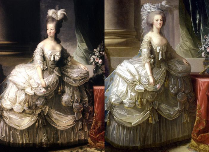 | Keywords: Marie Antoinette 1778-1779.jpg it Maria Antonietta in due dipinti di Elisabeth Vigée Le Brun L'uno a sinistra realizzato nel 1778 l'altro a destra realizzato nel 1779 Nel secondo ritratto si può notare il nuovo taglio di capelli adottato dopo la nascita della figlia il parto aveva reso molto più delicata l'attaccatura dei capelli che quindi non potevano più essere acconciati in maniera elaborata e soprattutto non potevano essere sottoposti a forti stress; venne così creata dal parrucchiere Léonard una nuova acconciatura appositamente per la regina Musée de Versailles e de Trianon; Kunsthistorisches Museum Vienna Creator Elisabeth Vigée-Lebrun 1778-1779 PD-old-100 PD-old-100 Marie Antoinette in Court Dress Vigée-Lebrun 1778 Marie Antoinette in Court Dress Vigée-Lebrun 1783 Marie Antoinette 1778-1783.jpg it Maria Antonietta in due dipinti di Elisabeth Vigée Le Brun L'uno a sinistra realizzato nel 1778 l'altro a destra realizzato nel 1779 Nel secondo ritratto si può notare il nuovo taglio di capelli adottato dopo la nascita della figlia il parto aveva reso molto più delicata l'attaccatura dei capelli che quindi non potevano più essere acconciati in maniera elaborata e soprattutto non potevano essere sottoposti a forti stress; venne così creata dal parrucchiere Léonard una nuova acconciatura appositamente per la regina Musée de Versailles e de Trianon; Kunsthistorisches Museum Vienna Creator Elisabeth Vigée-Lebrun 1778-1779 PD-old-100 PD-old-100 Marie Antoinette in Court Dress Vigée-Lebrun 1778 Marie Antoinette in Court Dress Vigée-Lebrun 1783 |