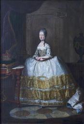 Keywords: Marie-Béatrice d'Este.jpg workshop of Portrait en pied de Marie-Béatrix d'Este duchesse de Massa épouse de l'archiduc Ferdinand d'Autriche 1760-1829 ca 1772 oil canvas size cm 115 5 80 Institution Versailles petit appartement de la reine Versailles http //www photo rmn fr/cf/htm/CSearchZ aspx o Total 2 FP 11090800 E 2K1KTSU4Z7AO3 SID 2K1KTSU4Z7AO3 New T Pic 1 SubE 2C6NU0HGHCVF RMN accession number MV3953 own Jebulon 2011 05 25 thumb left 75px 48 48 17 4 N 2 7 13 6 E Wikimedia takes the Château de Versailles Cc-zero DEFAULTSORT 1772c; Maria Beatrice d'Este Wikimedia takes the Château de Versailles May 25 2011 Marie-Béatrice d'Este jpg The Imperial Family of Austria serie attributed to Anton von Maron Versailles 18th-century oil portraits of standing women at full length 18th-century women looking at viewer in art Archducal hats in art Columns in portrait paintings Drapery in portrait paintings Gold lace in art Lace sleeves in art Panniers clothing in portrait paintings Pilasters in portraits Portrait paintings of women with crowns on cushions Portrait paintings of women with tables |