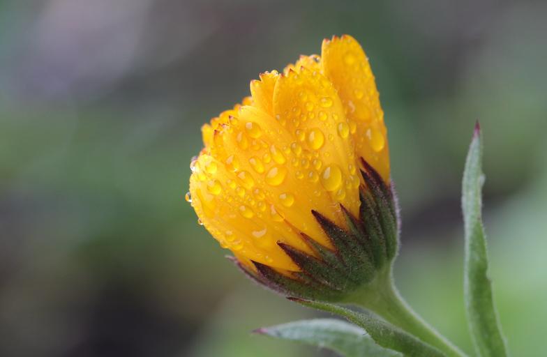 Keywords: marigold calendula officinalis gardening composites asteraceae open blossom bloom bloom plant medicinal plant wet raindrop