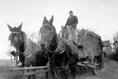 Keywords: Marion Cty, Iowa Farmer w mule drawn wagon, 1920s.jpg en Iowa farmer driving mule-drawn wagon Late grandfather of JGKlein inherited by father of JGKlein used with permission Late grandfather of JGKlein inherited by father of JGKlein used with permission ~ 1926 Marion County Iowa Pleasantville Iowa Mule transport Agriculture in Iowa |