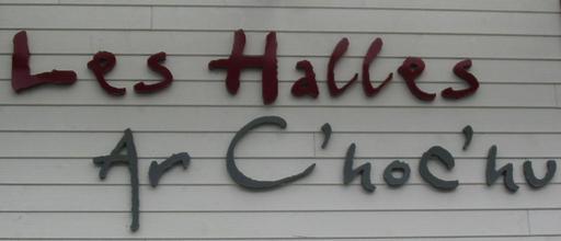 Keywords: Market bilingual sign Carhaix.jpg Bilingual sign in French and Breton of market hall in Carhaix Brittany Own 2007-08-16 Man vyi Bilingual Breton-French signs Buildings in Carhaix-Plouguer Market halls in Finistère Carhaix-Plouguer
