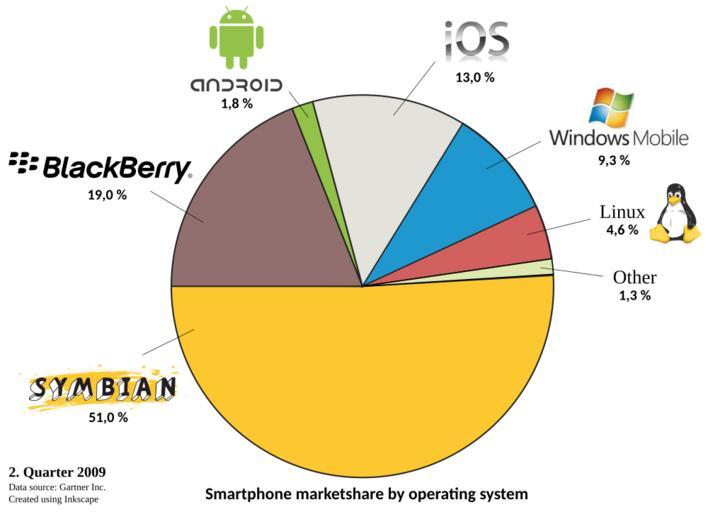Keywords: Market Share Smartphone OS in 2nd-Q-2009-EN.svg en Share of 2009 Q2 smartphone sales to end users by operating system according to Gartner own Sababu 2010-10-16 Data sourced from http //www gartner com/it/page jsp id 1421013 Created using Inkscape SVG pie charts Operating system statistics Smartphones Android statistics |