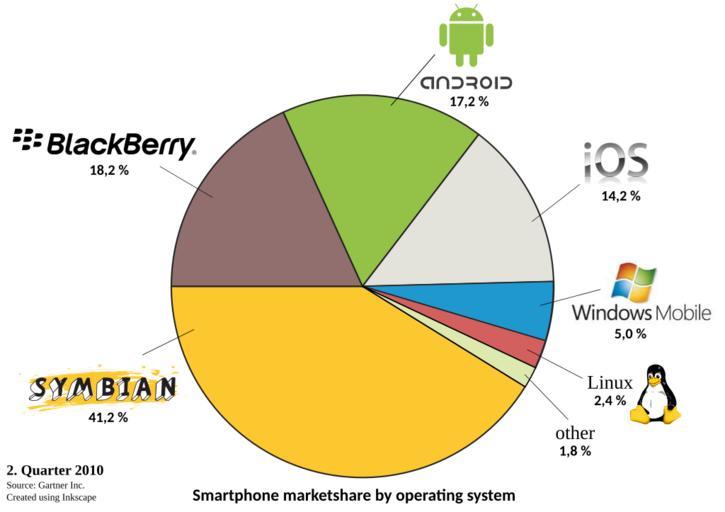 Keywords: Market Share Smartphone OS in 2nd-Q-2010-EN.svg en Share of 2010 Q2 smartphone sales to end users by operating system according to Gartner own Sababu 2010-10-16 Created using Inkscape SVG pie charts Operating system statistics Smartphones Android statistics |