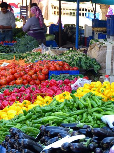 Keywords: market vegetables food tomatoes paprika eggplant healthy nutrition