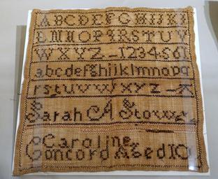 Keywords: Marking sampler, Sarah A. Stow, Concord, early 1800s, linen - Concord Museum - Concord, MA - DSC05867.JPG en Exhibit in the Concord Museum Concord Massachusetts USA 2014-12-30 14 22 32 own Daderot other versions PD-old-100 cc-zero Textiles in the Concord Museum 1800s samplers |