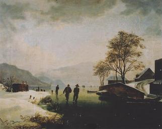 Keywords: Markus Pernhart - Wörthersee bei Loretto mit Eisläufern.jpeg Artwork Creator Markus Pernhart ~ 1850 oil canvas 36 5 x 45 cm private collection accession number object history credit line repro from artbook PD-old-100 Landscape paintings by Markus Pernhart Ice skating in art Paintings of the Wörthersee |
