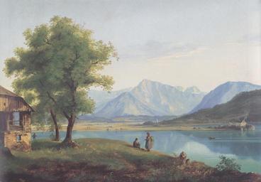 Keywords: Markus Pernhart - Wörthersee mit Loretto und dem Ferlacher Horn.jpeg Artwork Creator Markus Pernhart oil canvas 49 x 61 cm private collection accession number object history credit line repro from artbook PD-old-100 Landscape paintings by Markus Pernhart Paintings of the Wörthersee |