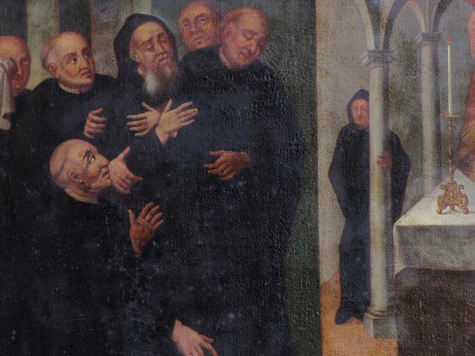 Keywords: Marmoutier Abbaye 218.JPG Alsace Bas-Rhin Marmoutier Église abbatiale Saint-Etienne Autel St-Benoît Détails du tableau Mort de St-Benoît XVIIIe own 2013 Ralph Hammann cc-by-sa-3 0 Artwork / Œuvre d'art / Kunstwerk Artist Mort de saint Benoît dans une église à colonnes le saint debout entouré de ses frères exhale son dernier soupir Son âme sous la forme d'un petit personnage blanc est accueillie par Dieu dans les nuées Devant l'autel sont posées une crosse et une mitre circa 1730 oil canvas 110 cm de large Abbatiale Saint-Etienne Marmoutier Autel secondaire de Saint-Benoît IM67011788 object history other versions Ralph Hammann PD-old accession number Photographs of Marmoutier by Ralph Hammann Taken with Canon PowerShot SX20 IS Autel de Saint-Benoît Marmoutier Baroque church paintings in Alsace 18th-century church paintings in Alsace Objets monuments historiques in Bas-Rhin church paintings Paintings of Benedict of Nursia Details of 18th-century paintings |
