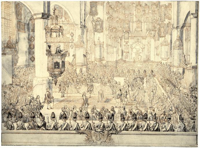Keywords: Marriage of prince Karl Christian of Nassau-Weilburg with princess Carolina of Orange-Nassau.jpg nl Huwelijksceremonie van prins Karel Christiaan van Nassau-Weilburg met prinses Carolina van Oranje-Nassau 5 maart 1760 Interieur van de Grote Kerk te Den Haag met alle gasten de dominee spreekt het paar toe Bij het bruidspaar staat de jonge prins Willem V van Oranje-Nassau met zijn voogd de hertog van Brunswijk Onderaan de wapens van het bruidspaar Ontwerp voor een prent en Wedding ceremony of Prince Charles Christian of Nassau-Weilburg and Princess Carolina of Orange-Nassau 5 March 1760 Interior of the Great Church in The Hague with all the guests the reverend speaks to the couple Near the couple the young Prince William V of Orange-Nassau with his guardian the Duke of Brunswick At the bottom the coat of arms of the couple Design for a print de Hochzeitszeremonie des Prinzen Karl Christian von Nassau-Weilburg und Prinzessin Carolina von Oranien-Nassau 5 März 1760 Innenansicht der Grosse Kirche in Den Haag mit allen Gästen spricht der Pfarrer für das Paar Neben das Paar der junge Prinz Wilhelm V von Oranien-Nassau mit seinem Vormund der Herzog von Braunschweig Unten die Arme des Paares Entwurf für einen Druck fr La cérémonie de mariage du Prince Charles Christian de Nassau-Weilbourg et la princesse Caroline d'Orange-Nassau le 5 Mars 1760 Intérieur de la Grand Église à La Haye avec tous les invités le ministre parle du couple Dévant le couple le jeune prince Guillaume V d'Orange-Nassau avec son tuteur le duc de Brunswick Bas les armes du couple Conception pour une impression 1760 Rijksmuseum Amsterdam - Object number RP-T-00-2052 Creator Tethart Philipp Christian Haag cc-zero Uploaded with UploadWizard Tethart Philipp Christian Haag Charles Christian Prince of Nassau-Weilburg Carolina of Orange-Nassau 18th-century people of the Netherlands 18th-century people of Germany 18th-century group portraits The Hague in the 1760s Prints and drawings of The Hague Grote of Sint-Jacobskerk The Hague |