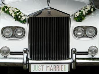 Keywords: marry bridal car marriage wedding auto cooler spotlight white chrome vehicle limousine blinker bumper sheet steel drive cool figure ornament automotive metal fig rolls royce spirit of ecstasy