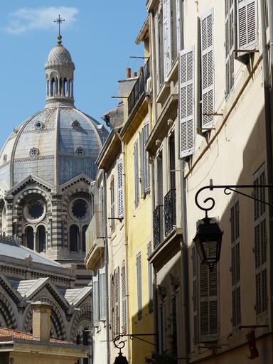 Keywords: marseille cathedral france facade architecture old town building historically dome church dom