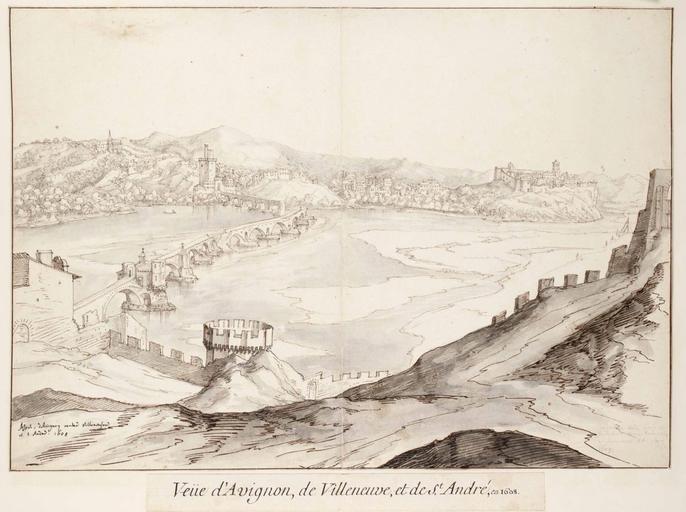 | Keywords: Martellage 1608 Pont Saint Benezet.jpg View of the Pont Saint-Bénezet at Avignon looking towards Villeneuve Graphite with pen and dark brown ink with grey wash on white paper cm 39 3 55 5 Institution Ashmolean Museum Inscribed in graphite at upper right Prospectus Ville novae et / S Andree Trans Rodanum / ex Aveznone 24 7bre / 1607; and in brown ink at lower left Aspet dAvignon contre Villeneufve / et S Andree 1608; and on a separate slip of paper beneath the picture Veüe d'Avignon de Villeneuve et de St André en 1608 object history Berthelot Michel 2013 http //www pavage map archi fr/Le_Pont_dAvignon/Travaux_files/ 23Combien_de_piles pdf Le Pont d'Avignon combien de piles http //www ashmoleanprints com/image/658559/etienne-martellange-1569-1641-view-of-the-bridge-at-avignon-looking-towards-villeneuve WA C Lar II 103 1608 Creator Étienne Martellange Other versions Pont Saint Bénézet par le père Martelange XVIIe jpg A cropped version at a lower resolution Custom license marker 2013 03 15 PD-Art-100 Uploaded with UploadWizard Pont Saint-Bénézet in art Étienne Martellange |