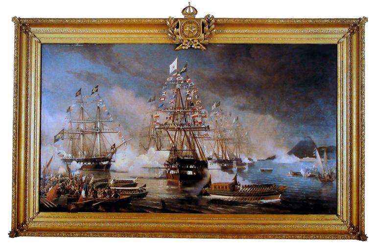 Keywords: Martino-constituição-MHN.jpg Artwork Creator Eduardo de Martino title Frigate Constituição Fragata Constituição 1872 oil canvas cm 200 349 Museu Histórico Nacional MHN Rio de Janeiro Brazil O quadro retrata a chegada da fragata Constituição à Baía da Guanabara trazendo a princesa D Teresa Cristina noiva de D Pedro II em 3 de setembro de 1843 scan de Museu Histórico Nacional edição Banco Safra PD-Art Other versions PLEASE DO NOT REMOVE THE FRAME PD-old-auto 1912 Romantic paintings in Brazil Paintings in the Museu Histórico Nacional Eduardo de Martino Frigates of Brazil Naval ships of Brazil in art 1870s paintings from Brazil |