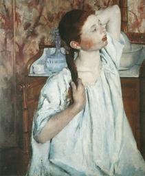 Keywords: Mary Cassatt - Girl Arranging Her Hair 1886.jpg Girl Arranging Her Hair 1886 Jeune fille se coiffant 1886 Oil canvas 75 1 x 62 5 cm National Gallery of Art Livre Le réalisme américain de Edward Lucie-Smith Paris Thames Hudson 2002 ISBN 9782878112108 1886 creator Mary Cassatt Other versions <gallery> File Cassatt Mary Girl Arranging Her Hair 1886 jpg Different tones </gallery> PD-old-auto 1926 Girl Arranging Her Hair Hair care in art Braids in art Paintings of girls Females with blue dresses in art Impressionist paintings in the National Gallery of Art 1886 paintings Taken with Panasonic Lumix DMC-TZ2 1880s portrait paintings 1880s paintings in the United States 1880s dresses |