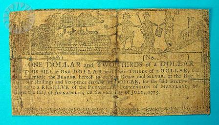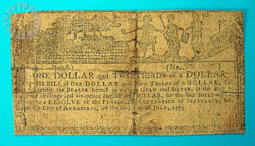 Keywords: legendary coins legendarycoins numismatics money smithsonian probably public domain probablypublicdomain SI Neg. 2005-27394. Date: 9/1/2005...American currency was sometimes used to mold public opinion during the War for Independence. The high-minded Latin mottoes suggested by Ben Franklin had this intent. So did a series of small, printed messages on North Carolina currency issued between 1778 and 1780. But an early series of Maryland notes, including this specimen, stand out. .The note is worn, and, in common with several of its fellows, it was carefully stitched together, obscuring part of the design. But if we could see everything, we would see that, on the front of the note, a figure representing Great Britain receives a petition of the Continental Congress. It is handed to her by an America, who is simultaneously trampling on a scroll marked SLAVERY and holding aloft a Liberty cap on a pole, a beacon for American troops who are hastening to the scene from the right. .Meanwhile, George III (the figure at the center-left) is doing his best to set fire to an American city (perhaps Baltimore) already under attack from a British fleet. He's also trampling a copy of Magna Charta, just to underscore the point. Inscriptions along the sides read "AN APPEAL TO HEAVEN" and "PRO ARIS ET FOCIS" (For altars and hearths). The other side of the note conveys hope. Britain and America are shown achieving peace, with the reminder that "PAX TRIUMPHIS POTIOR" (Peace is preferable to victory)..The note was designed by Annapolis silversmith Thomas Sparrow in the summer of 1775. His initials are inscribed on the front and his full name on the back. This series of Maryland notes remains the most politically charged currency ever issued in the United States during wartime..Click here to view the obverse...Credit: Tom Mulvaney (Smithsonian Institution) SI Neg. 2005-27394. Date: 9/1/2005...American currency was sometimes used to mold public opinion during the War for Independence. The high-minded Latin mottoes suggested by Ben Franklin had this intent. So did a series of small, printed messages on North Carolina currency issued between 1778 and 1780. But an early series of Maryland notes, including this specimen, stand out. .The note is worn, and, in common with several of its fellows, it was carefully stitched together, obscuring part of the design. But if we could see everything, we would see that, on the front of the note, a figure representing Great Britain receives a petition of the Continental Congress. It is handed to her by an America, who is simultaneously trampling on a scroll marked SLAVERY and holding aloft a Liberty cap on a pole, a beacon for American troops who are hastening to the scene from the right. .Meanwhile, George III (the figure at the center-left) is doing his best to set fire to an American city (perhaps Baltimore) already under attack from a British fleet. He's also trampling a copy of Magna Charta, just to underscore the point. Inscriptions along the sides read "AN APPEAL TO HEAVEN" and "PRO ARIS ET FOCIS" (For altars and hearths). The other side of the note conveys hope. Britain and America are shown achieving peace, with the reminder that "PAX TRIUMPHIS POTIOR" (Peace is preferable to victory)..The note was designed by Annapolis silversmith Thomas Sparrow in the summer of 1775. His initials are inscribed on the front and his full name on the back. This series of Maryland notes remains the most politically charged currency ever issued in the United States during wartime..Click here to view the obverse...Credit: Tom Mulvaney (Smithsonian Institution) |