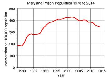 Keywords: Maryland Prison Population.svg en Maryland prison incarceration rate per 100 000 population from 1978 to 2014 Data from http //www bjs gov/index cfm ty nps BJS 2016-05-11 own Delphi234 other versions current annually Generated with Wikimedia SVG Chart SVG Chart/box cc-zero Demographics of Maryland Imprisonment and detention rates in the United States |