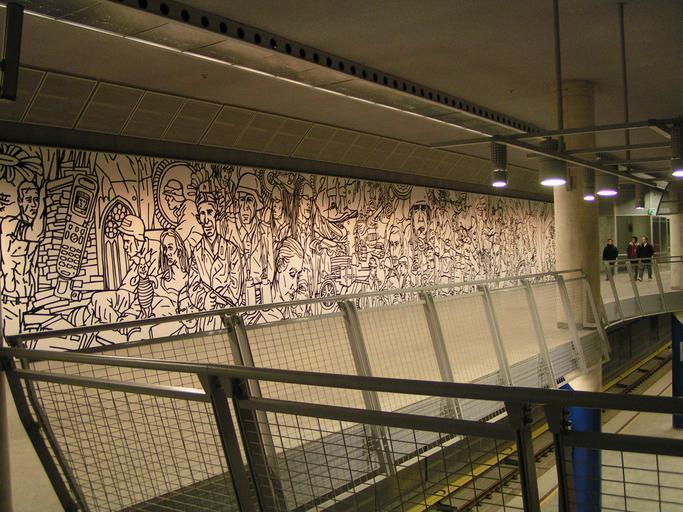 Keywords: Marymont01.JPG Sciana znajdująca się na galerii stacji Marymont przeznaczona do prezentacji dzieł artystów 2006-12-30 own assumed Ania0ania~commonswiki Marymont metro station