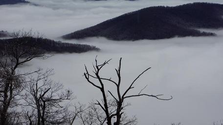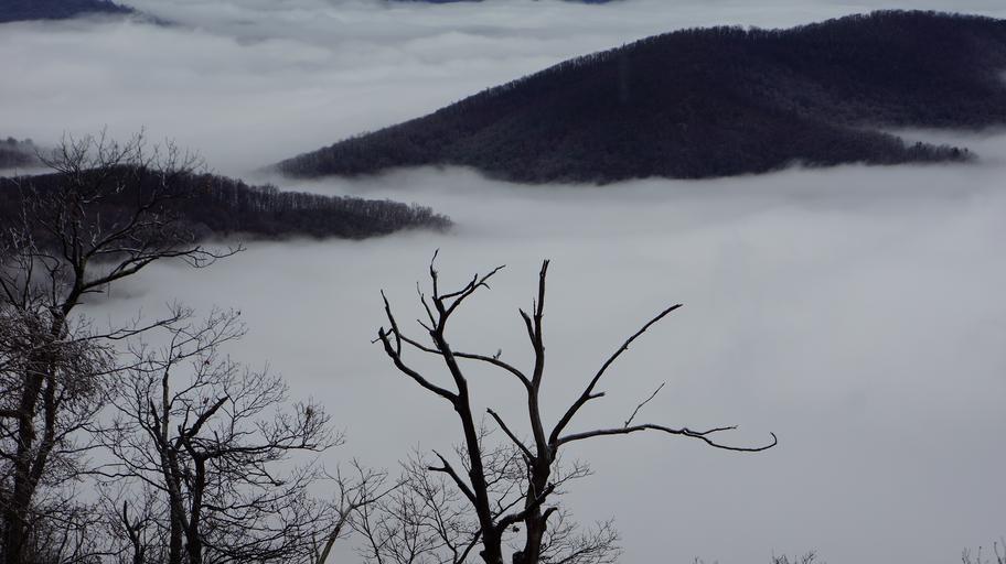 Keywords: Nature Mountain Trail National Park Trekking Hiking Skyline USA Hike Camping Campground Shenandoah Valley Sky Hawk hoarfrost Marys Rock Winter Fog