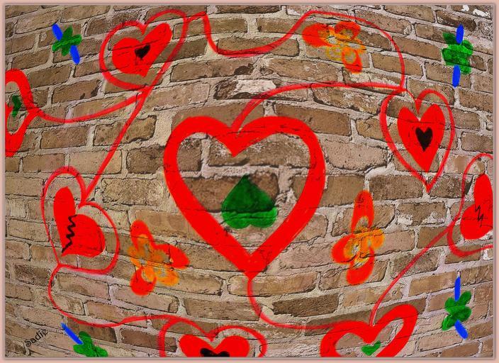 Keywords: masonry graffiti art colorful heart