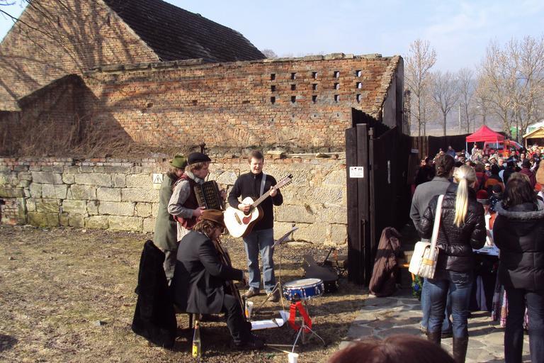 Keywords: Masopust Kravaře 2011E.jpg cs Muzikanti u Vísecké rychty při masopustu own Zákupák 2011-03-05 Masopust in Kravaře 2011