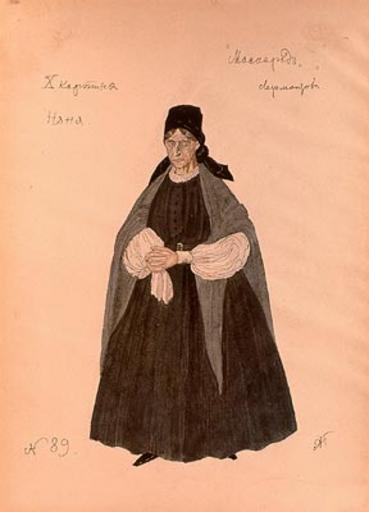 Keywords: Masquerade by Golovin - Nanny (1917, Bakhrushin museum).jpg ru Эскиз к постановке д амы Ле монтова « аска ад» 1917 http //bakhrushin-backup theatre ru/collection/sceneries/photo131 html A Golovin other versions PD-old-70-1923 Files uploaded by Shakko from various sources Masquerade by Golovin black clothing in art female Mourning women in art Nannies in art