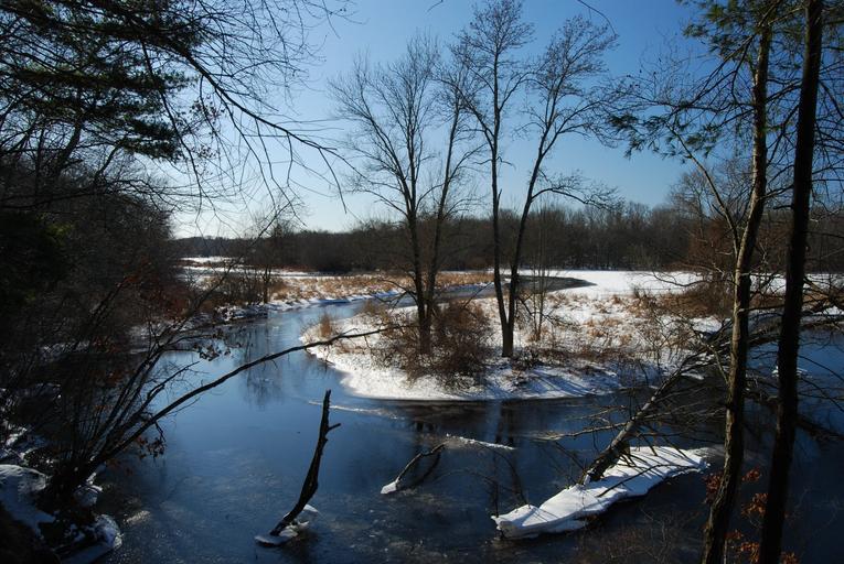 Keywords: massachusetts river stream forest reflections winter snow ice nature outside water sky clouds trees woods country countryside