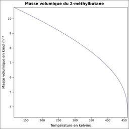 Keywords: Masse volumique 2-méthylbutane.svg fr Masse volumique calculée d'après <br/> Robert H Perry et Donald W Green Perry's Chemical Engineers' Handbook McGraw-Hill USA 1997 7e éd 2400 p ISBN 0-07-049841-5 p 2-94 own Epop 2010-06-27 Created with Gnumeric Density curves |
