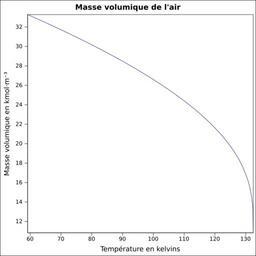 Keywords: Masse volumique air.svg fr Masse volumique calculée d'après <br/> Robert H Perry et Donald W Green Perry's Chemical Engineers' Handbook McGraw-Hill USA 1997 7e éd 2400 p ISBN 0-07-049841-5 p 2-94 own Epop 2010-06-27 Created with Gnumeric Density curves |