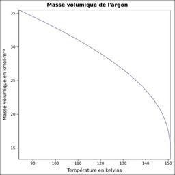 Keywords: Masse volumique argon.svg fr Masse volumique calculée d'après <br/> Robert H Perry et Donald W Green Perry's Chemical Engineers' Handbook McGraw-Hill USA 1997 7e éd 2400 p ISBN 0-07-049841-5 p 2-94 own Epop 2010-06-27 Created with Gnumeric Density curves |