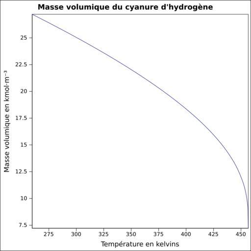 Keywords: Masse volumique cyanure d'hydrogène.svg fr Masse volumique calculée d'après <br/> Robert H Perry et Donald W Green Perry's Chemical Engineers' Handbook McGraw-Hill USA 1997 7e éd 2400 p ISBN 0-07-049841-5 p 2-94 own Epop 2010-06-27 Created with Gnumeric Density curves |