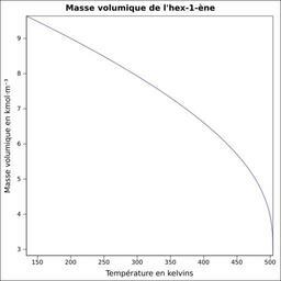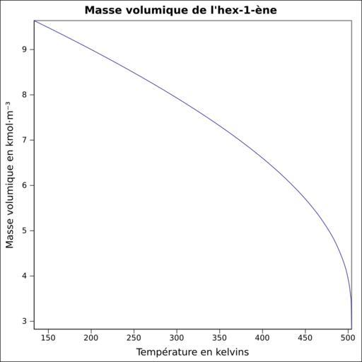 Keywords: Masse volumique hex-1-ène.svg fr Masse volumique calculée d'après <br/> Robert H Perry et Donald W Green Perry's Chemical Engineers' Handbook McGraw-Hill USA 1997 7e éd 2400 p ISBN 0-07-049841-5 p 2-94 own Epop 2010-06-27 Created with Gnumeric Density curves |