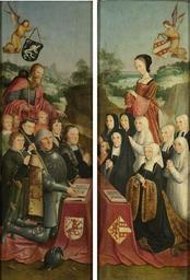 Keywords: Master of Alkmaar two panels Rijksmuseum.jpg Artwork LangSwitch Two wings of a memorial tablet with eight male portraits and nine female portraits respectively accompanied by Saints James the Greater and Mary Magdalen <ref>http //www rkd nl/rkddb/dispatcher aspx action search database ChoiceImages search priref 29161 RKDimages Art-work number 29161 title translated by Wikimedia Commons </ref> Twee zijluiken van een memoriestuk met acht portretten van mannen en negen portretten van vrouwen respectievelijk vergezeld van de heiligen Jacobus Major en Maria Magdalena <ref>http //www rkd nl/rkddb/dispatcher aspx action search database ChoiceImages search priref 29161 RKDimages Kunstwerknummer 29161 </ref> Oil on panel cm 101 35 5 left wing cm 102 36 right wing Alkmaar Stedelijk Museum LangSwitch Two side wings of a triptych of which the central panel is now lost Zijluiken van een drieluik waarvan het middenpaneel verloren is gegaan LangSwitch Coat of arms inner left wing bottom right Heraldisch wapen linkervleugel rechtsonder Willem Jelysz van Soutelande 1515/1516 LangSwitch Coat of arms inner right wing bottom left Heraldisch wapen rechtervleugel linksonder Kathrijn Willemsdr van der Graft 1490/1491 LangSwitch Coat of arms inner left wing top left Heraldisch wapen linkervleugel linksboven Jacob de Wael van Rozenburg 1524 LangSwitch Coat of arms inner right wing top right Heraldisch wapen rechtervleugel rechtsboven Margriet van Waveren Provenance c 1515 commissioned by a member of the Van Soutelande family c 1515 trasferred to the St Bavokerk Haarlem date unknown acquired by the Van Leyden Gael family Leiden date unknown acquired by Van Rossum du Chattel Leiden June 1885 bought by the Rijksmuseum Amsterdam inv no SK-A-1188-A and SK-A-1188-B Amsterdam at the sale of the collection of Louis Henry van der Hoop Tilanus 1900 The Hague December 2001 lent to the Stedelijk Museum Alkmaar https //www rijksmuseum nl/collectie/SK-A-1188-A www rijksmuseum nl and https //www rijksmuseum nl/collectie/SK-A-1188-B www rijksmuseum nl ~ 1490-1510 Creator Master of Alkmaar Other versions PD-old-100 LangSwitch Notes Noten <references /> Master of Alkmaar 16th-century portraits Paintings in the Stedelijk Museum Alkmaar Paintings of the Master of Alkmaar with fur Squirrel clothing in art Fur fashion in 1500 |