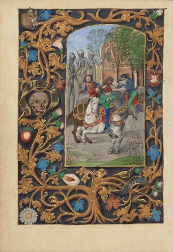 Keywords: Master of the Dresden Prayer Book or workshop (Flemish, active about 1480 - 1515) - The Three Living and the Three Dead - Google Art Project.jpg Google Art Project institution Getty Center active about 1480 - 1515 6830330 Master of the Dresden Prayer Book or workshop Flemish Flemish /collection/the-j-paul-getty-museum/artwork/the-three-living-and-the-three-dead-master-of-the-dresden-prayer-book-or-workshop-flemish-active-about-1480-1515/6822832/ Master of the Dresden Prayer Book or workshop Flemish active about 1480 - 1515 illuminator /artist/master-of-the-dresden-prayer-book/6808336/ 6808336 /collection/the-j-paul-getty-museum/ The J Paul Getty Museum 343005 http //www getty edu/museum 3/12/2012 5 43 28 PM /collection/the-j-paul-getty-museum/artwork/the-three-living-and-the-three-dead-master-of-the-dresden-prayer-book-or-workshop-flemish-active-about-1480-1515/6822832/ 1480 about 1480 - 1485 Horses Tempera colors and gold on parchment 205 6822832 True 1485 3/25/2012 11 36 27 AM lido getty edu-gm-obj110978 http //www getty edu/art/gettyguide/artObjectDetails artobj 110978 http //www getty edu/legal/copyright html Folio 1480 1490 Bruges Belgium Creation w148 x h205 cm about 1480 - 1485 False 0 6875 Part the-three-living-and-the-three-dead-master-of-the-dresden-prayer-book-or-workshop-flemish-active-about-1480-1515 The Three Living and the Three Dead t 148 Tempera colors and gold on parchment Horses http //www getty edu/legal/copyright html special url_id PwHAPk6GYXukIw PD-old-100 MS 23 Getty museum - Crohin La Fontaine Hours Google Art Project works by Master of the Dresden Prayer Book or workshop The Three Living and The Three Dead Death in medieval miniatures