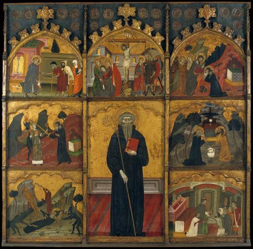 Keywords: Master of Rubió - Altarpiece of Saint Anthony the Abbot - Google Art Project.jpg Active in Catalonia towards the third quarter of the 14th century 1370 1370 Master 591579 of Rubió Active in Catalonia towards the third quarter of the 14th century /collection/museu-nacional-dart-de-catalunya/artwork/altarpiece-of-saint-anthony-the-abbot-master-of-rubio/598478/ Master of Rubió /artist/master-of-rubio/4127398/ 4127398 /collection/museu-nacional-dart-de-catalunya/ Museu Nacional d'Art de Catalunya - MNAC Barcelona 497131 http //www mnac cat/ 12/28/2011 4 42 42 PM /collection/museu-nacional-dart-de-catalunya/artwork/altarpiece-of-saint-anthony-the-abbot-master-of-rubio/598478/ 1360 Religion Tempera and gold leaf on wood True 1735 598478 True 1375 Around 1360-1375 /collection/museu-nacional-dart-de-catalunya/level/ground-floor/2552108/ Ground floor 3/24/2012 7 31 41 AM 045854-CJT http //art mnac cat/fitxatecnica html;jsessionid inventoryNumber 045854-CJT lang en Museu Nacional d'Art de Catalunya Painting 1360 1380 w1763 x h1735 x d115 cm Around 1360-1375 False 1 01386138613861 Object /collection/museu-nacional-dart-de-catalunya/level/ground-floor/2552108/room-23/591444/ Room 23 altarpiece-of-saint-anthony-the-abbot-master-of-rubio Altarpiece of Saint Anthony the Abbot a 1763 Acquired 1948 045854-CJT Tempera and gold leaf on wood Religion special url_id iAEmLEn4bCFx5g PD-old-100-1923 1370 Gothic paintings in the Museu Nacional d'Art de Catalunya Google Art Project works by Master of Rubió |