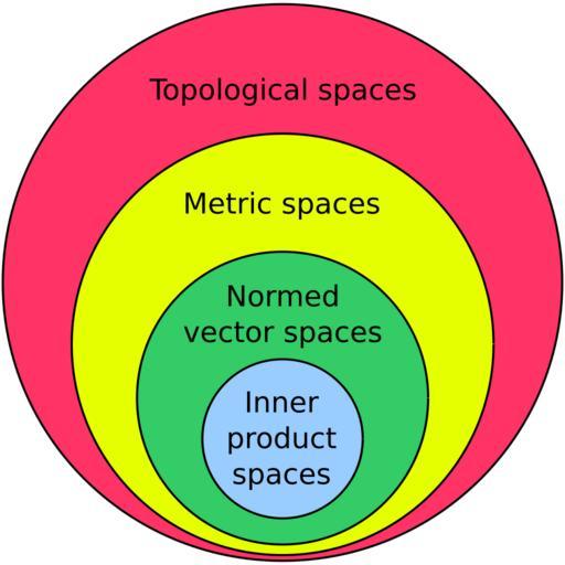 Keywords: Mathematical Spaces.svg en A hierarchy of mathematical spaces The inner product induces a norm The norm induces a metric The metric induces a topology Own work by uploader recreation of bitmap version by en User Jhausauer Qef 2009-06-21 Original bitmap version with same layout and colours en File Mathematical_Spaces png Created in Inkscape Mathematical diagrams Basics of topology |