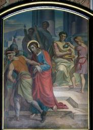 | Keywords: Matija Koželj - Križev pot, 1. postaja.jpg Artwork creator Matija Koželj 1871 oil canvas cm 126 87 St Stephen's Parish Church Ribnica https //prezi com/gd-yfn-05joo/oljne-slike-iz-obdobja-od-1800-do-1914-v-cerkvah-ribniske-zu Non-free frame PD-old-auto 1917 1871 paintings in Slovenia Paintings by Matija Koželj Stations of the Cross in Slovenia Station 1 Jesus is condemned to death 19th-century paintings of the Passion of Christ 19th-century religious paintings in Slovenia 19th-century oil on canvas paintings in Slovenia Paintings in St Stephen's Parish Church Ribnica |