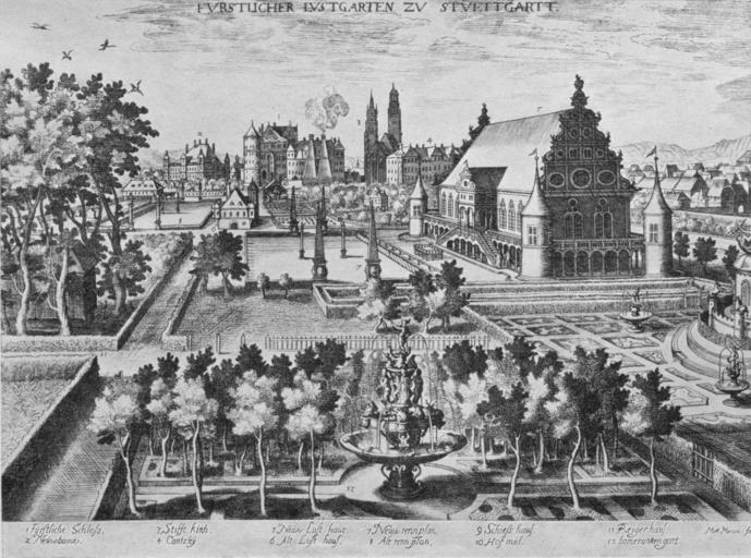 Keywords: Matthäus Merian, Stuttgart, 002.jpg de žFurstlicher Lustgarten zu Stuettgartt Radierung von Matthäus Merian nach einer Zeichnung von Georg Donauer 1616 232 x 336 mm Signiert Matth Merian fe Matthaeus Merian fecit Ausführung Matthäus Merian Unten Bildlegende Schefold 8120a <br>Hinweis Zur Anzeige der Bildkommentare den Mauszeiger über das Bild bewegen Gustav Wais Alt-Stuttgart Die ältesten Bauten Ansichten und Stadtpläne bis 1800 Mit stadtgeschichtlichen baugeschichtlichen und kunstgeschichtlichen Erläuterungen Stuttgart 1954 Tafel 8 1616 Creator Matthäus Merian Stefan Gugenhan žDie wohl bekannteste Darstellung des Lustgartens ist der Stich šFürstlicher Lustgarten zu Stuettgartt ™ von Matthaeus Merian ¦ Der Stich vermittelt einen guten Eindruck vom Garten und seinen Bauwerken jedoch weist er zum Teil auffallend verkehrte Proportionen und auch unrichtige Detaildarstellungen auf Bildlegende 1 Fürstliche Schloss Altes Schloss <br/>2 Neüwbawe Neuer Bau <br/>3 Stifft kirch Stiftskirche <br/>4 Cantzley Alte Kanzlei <br/>5 Neüw Lust haus Neues Lusthaus <br/>6 Alt Lust haus Altes Lusthaus <br/>7 Neüw renn plan Neue Rennbahn <br/>8 Alt renn plan Alte Rennbahn <br/>9 Schiess haus Schießhaus <br/>10 Hof mül Hofmühle <br/>11 Reiger haus Reiherhaus <br/>12 Bomerantzen gart Pomeranzengarten PD-old-100 ImageNote 1 735 245 380 377 2391 1778 2 1 Altes Schloss ImageNoteEnd 1 ImageNote 2 484 382 245 278 2391 1778 2 2 Neuer Bau ImageNoteEnd 2 ImageNote 3 1124 242 179 344 2391 1778 2 3 Stiftskirche ImageNoteEnd 3 ImageNote 4 1210 442 275 167 2391 1778 2 4 Alte Kanzlei ImageNoteEnd 4 ImageNote 5 1285 221 690 690 2391 1778 2 5 Neues Lusthaus ImageNoteEnd 5 ImageNote 6 664 553 179 185 2391 1778 2 6 Altes Lusthaus ImageNoteEnd 6 ImageNote 7 768 723 658 317 2391 1778 2 7 Neue Rennbahn ImageNoteEnd 7 ImageNote 8 254 607 454 146 2391 1778 2 8 Alte Rennbahn ImageNoteEnd 8 ImageNote 9 290 968 1689 678 2391 1778 2 12 Pomeranzengarten ImageNoteEnd 9 ImageNote 10 374 550 155 105 2391 1778 2 9 Schießhaus ImageNoteEnd 10 ImageNote 11 3 729 377 421 2391 1778 2 11 Reiherhaus ImageNoteEnd 11 ImageNote 12 2095 765 293 532 2391 1778 2 Ölberg ImageNoteEnd 12 ImageNote 13 2146 550 236 218 2391 1778 2 Stadtmauer mit Siechentor ImageNoteEnd 13 ImageNote 14 876 550 105 84 2391 1778 2 10 Hofmühle ImageNoteEnd 14 Matthäus Merian ™s Engravings of Stuttgart Neues Lusthaus Stuttgart |