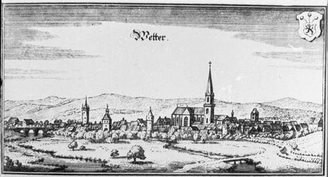 Keywords: Matthäus Merian Wetter (Kreis Marburg), Stadtansicht von Norden 1655.jpg Artwork Creator Matthäus Merian 1655 engraving object history exhibition history credit line 32059825 LA 3 063/52 mi03185a03 accession number Topographia Germaniae i Topogr Hassiae et Regionum Vicinarum Frankfurt 1655 Tf nach S 138 PD-old-100-1923 De Merian Hassiae 208 jpg Merian Hassiae History of Wetter Hesse Stift Wetter |