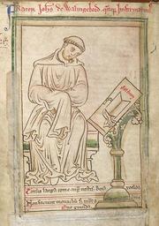 Keywords: Matthew Paris drawing of John of Wallingford (1255) - BL Cotton MS Julius D VII, f.42v (cropped).jpg John of Wallingford d 1258 John of Wallingford seated reading at a lectern Drawn and inscribed by Matthew Paris after John of Wallingford's term as infirmarer at St Alban's Cathedral St Alban's abbey 1255 Ink and pigments on vellum Institution British Library object history exhibition history credit line place of creation inscription Frater Johannes de Walingeford quandoque Infirmarius top la Brother John of Wallingford onetime Infirmarer inscription Salterium on lectern la Psalter inscription Tonsio larga comae nigra vestis bota rotunda / non faciunt monachum sed mens a crimine munda bottom la A wide tonsure of the hair a black robe a round boot / don't make a monk ; but a mind away from the sins of the world This file cropped from File Matthew Paris drawing of John of Wallingford 1255 - BL Cotton MS Julius D VII f 42v jpg taken from British Library Online Gallery http //www bl uk/onlinegallery/onlineex/illmanus/cottmanucoll/d/011cotjuld00007u00042v00 html webpage http //ogimages bl uk/images/011/011COTJULD00007U00042V00 5BSVC2 5D jpg image accession number Cotton MS Julius D VII f 42v <gallery> File Matthew Paris drawing of John of Wallingford 1255 - BL Cotton MS Julius D VII f 42v jpg original uncropped image File Engraving after Matthew Paris drawing of John of Wallingford 1255 jpg 1892 engraving </gallery> PD-Art-100 Matthew Paris drawing of John of Wallingford 1255 - BL Cotton MS Julius D VII f 42v jpg Uploaded with UploadWizard John of Wallingford Collecteana c 1250s - BL Cotton MS Julius D VII |