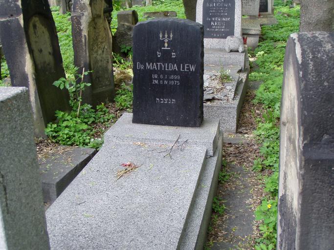 Keywords: MatyldaLewGrave.JPG en Grave of Matylda Lew Own Birczanin New Jewish Cemetery in Kraków Shabbat Candles on Jewish gravestones in Poland
