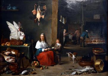 Keywords: Mauritshuis David Teniers II Kitchen Interior 14022016 2.jpg en Painting by David Teniers The Younger 1610 - 1690 Kitchen Interior 1644 Mauritshuis 2016-02-14 14 01 10 own Vassil other versions cc-zero Kitchen interiors by David Teniers the Younger 1644 Flemish paintings in the Mauritshuis People in kitchens in art Cooking in art Cuisine of the Netherlands in art Roast poultry Redressed birds People with food in art Baroque paintings of women Paintings of boys Child labour in art Swans in painting Swan dishes People with dogs in art 17th-century paintings of dogs Dead birds in art Dead animals in art 1644 paintings Dead swans in art 1640s paintings in the Netherlands 17th-century oil paintings in the Netherlands Kitchen interiors in Flemish genre paintings Swans in 17th-century art Swans in art of the Netherlands |